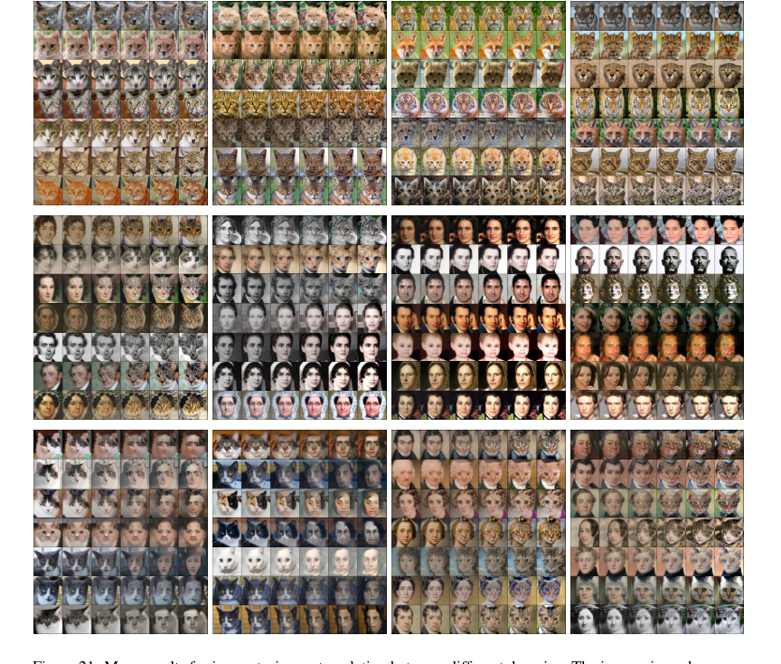 Figure 21. More results for image-to-image translation between different domains. The images in each row are time-uniformly sampled from the trajectory of 1-rectified flow solved N = 100 Euler steps with constant step size