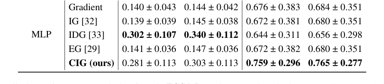 * 局所化された一貫したアトリビューション: 定性的に、論文の図に示されているように、CIGは補間パス全体で腫瘍領域内に、より安定した局所化された勾配を生成する一方、IG勾配は空間的に分散する傾向がある。これは、CIGが高次元ノイズと無関係な視覚的キューを、クラスを真に区別するものに焦点を当てることによって、真の意思決定領域を分離するのに優れていることを示している。