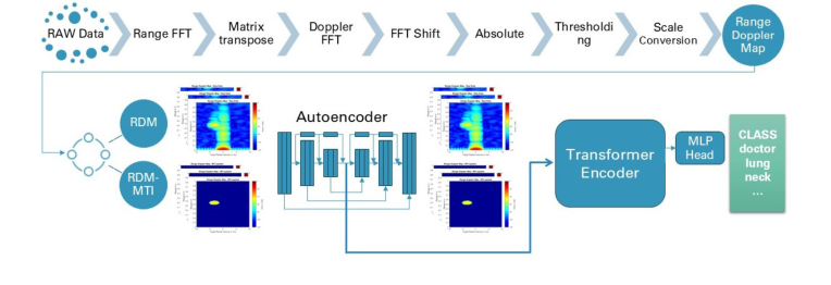著者らがカスタム畳み込みオートエンコーダーとそれに続くTransformerという特定の2段階パイプラインを選択した理由を理解するには、まずレーダーデータの厳しい現実を概観する必要がある。60 GHz mm波レーダーは、Range Doppler Maps (RDMs) および Moving Target Indication (MTI) マップを生成する。これらは本質的に、高次元行列のビデオライクなシーケンスであり、具体的にはフレームあたり $128 \times 1024$ である。