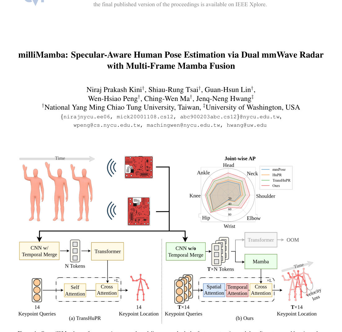 - 2D를 넘어: 3D 자세 및 메쉬 재구성으로: 현재 작업은 2D HPE에 중점을 둡니다. 시공간 Mamba 융합 메커니즘은 3D 인간 자세 또는 전체 인간 메쉬 재구성을 직접 예측하도록 확장 또는 조정될 수 있을까요? 이는 가상 현실, 증강 현실 및 더 정교한 인간-로봇 상호 작용의 응용 프로그램을 잠금 해제하겠지만, 2D 레이더 투영의 내재적 한계를 해결해야 합니다.