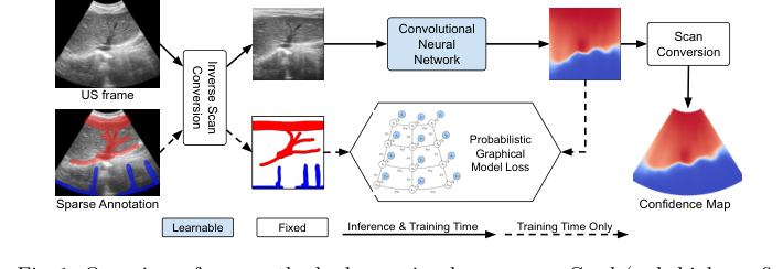 关键的结构优势在于 PGM 和 CNN 的“结合”。PGM 强制执行基本的超声物理先验——例如置信度随深度的近似单调衰减(第3.2节,方程4)以及跨扫描线的水平平滑性(第3.2节,方程5)——同时直接整合稀疏的用户标注。这提供了一个鲁棒、可解释的基础。在此基础上训练的 CNN 则学习了简单模型无法捕捉的图像强度与置信度之间复杂的非线性关系(第3节,第3.3节)。这种分工使得系统既有物理基础又高度适应各种现实世界的伪影。
